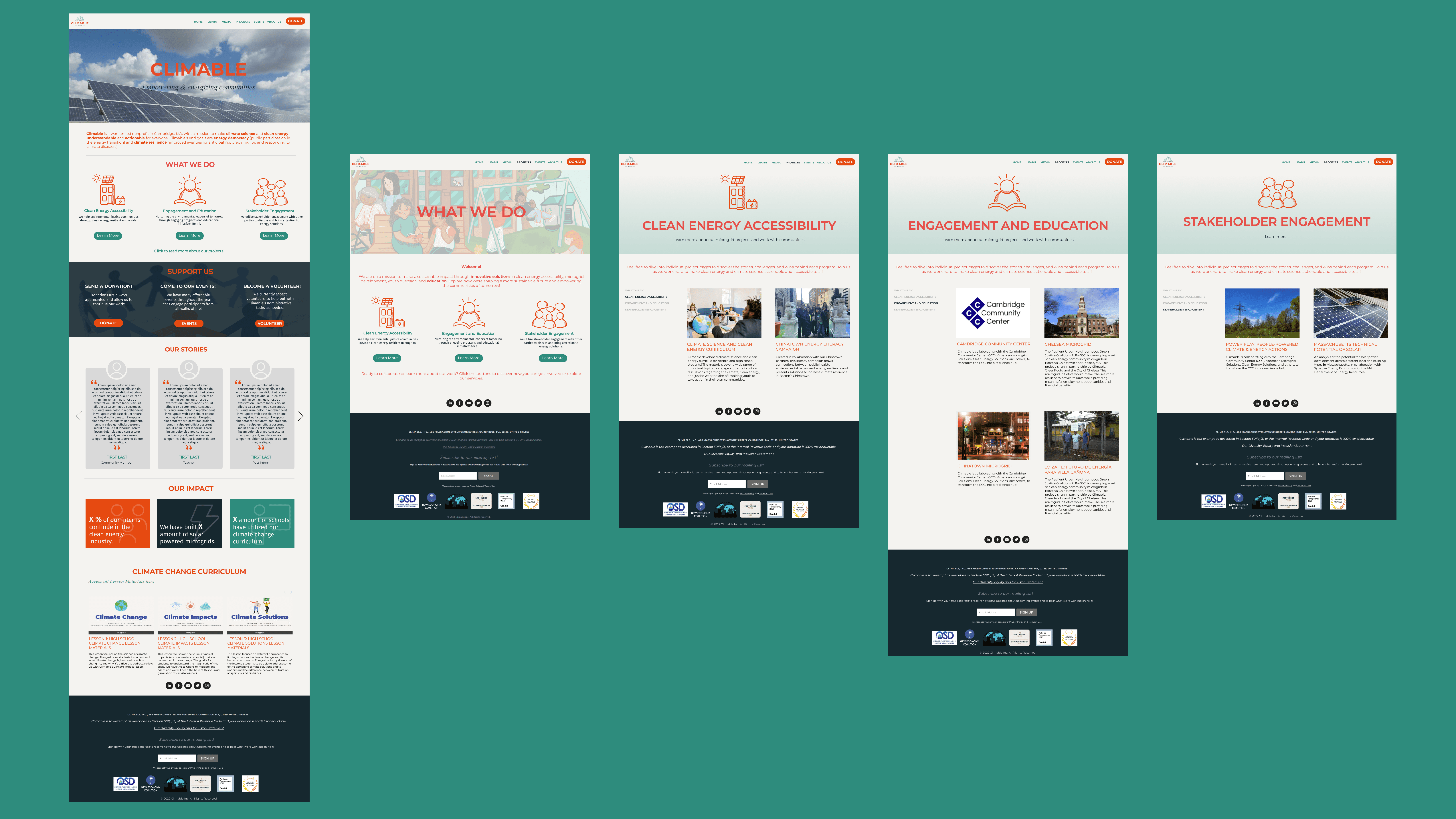 In the spring of 2024, I worked as a Marketing and Communications Intern at Climable, a Cambridge-based women-run non-profit intersecting clean energy with education. I learned so much about graphic design and social media management in the internship, but of course, at non-profits, I put on many hats beyond just social media management and graphic design. My supervisor tasked me with spearheading the redesign of Climable’s website where I gained invaluable experience in UX, UI, branding, and web design.