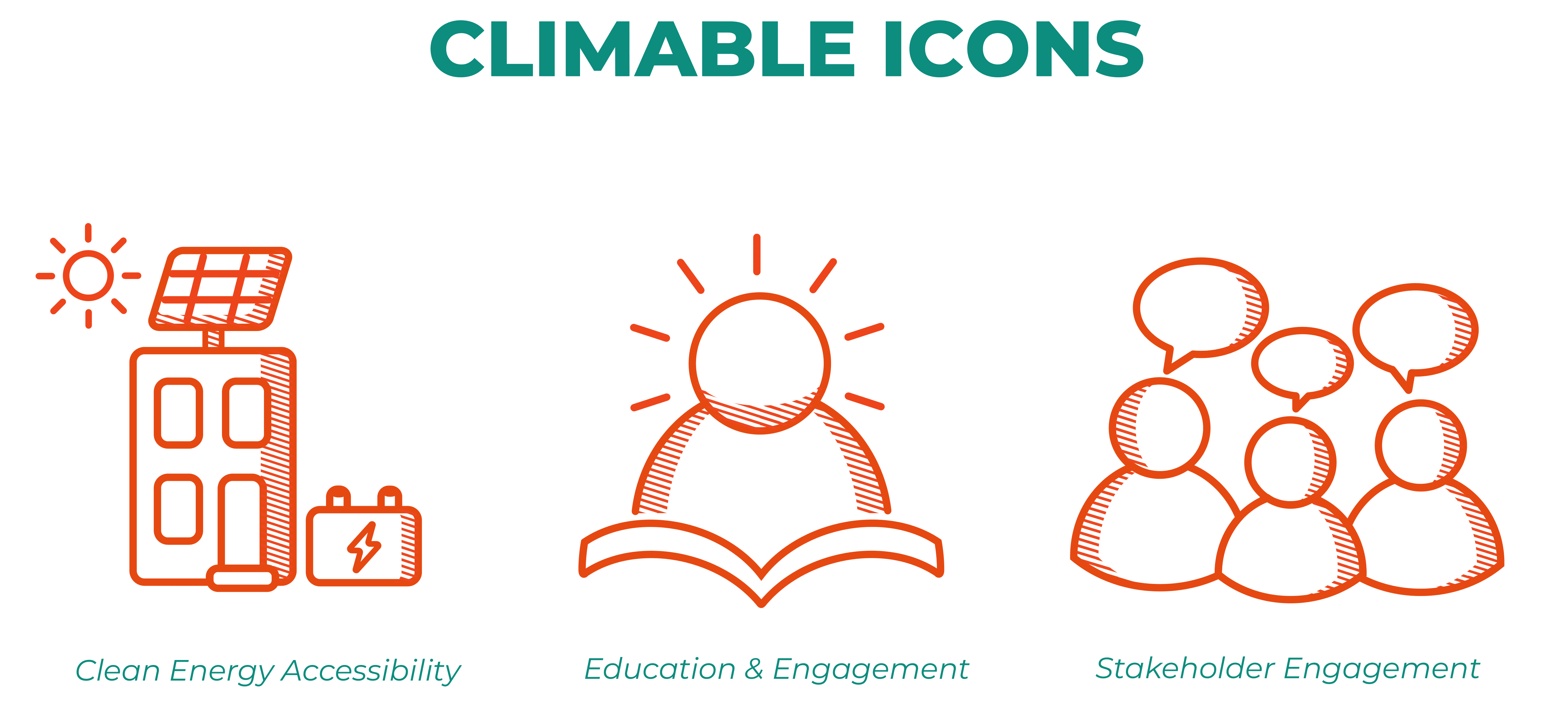 I developed sketches for the categories that Climable wants to emphasize in their "About" pages on their website. I had Climable staff vote for their favorite icons for each category to decide on which to finalize.