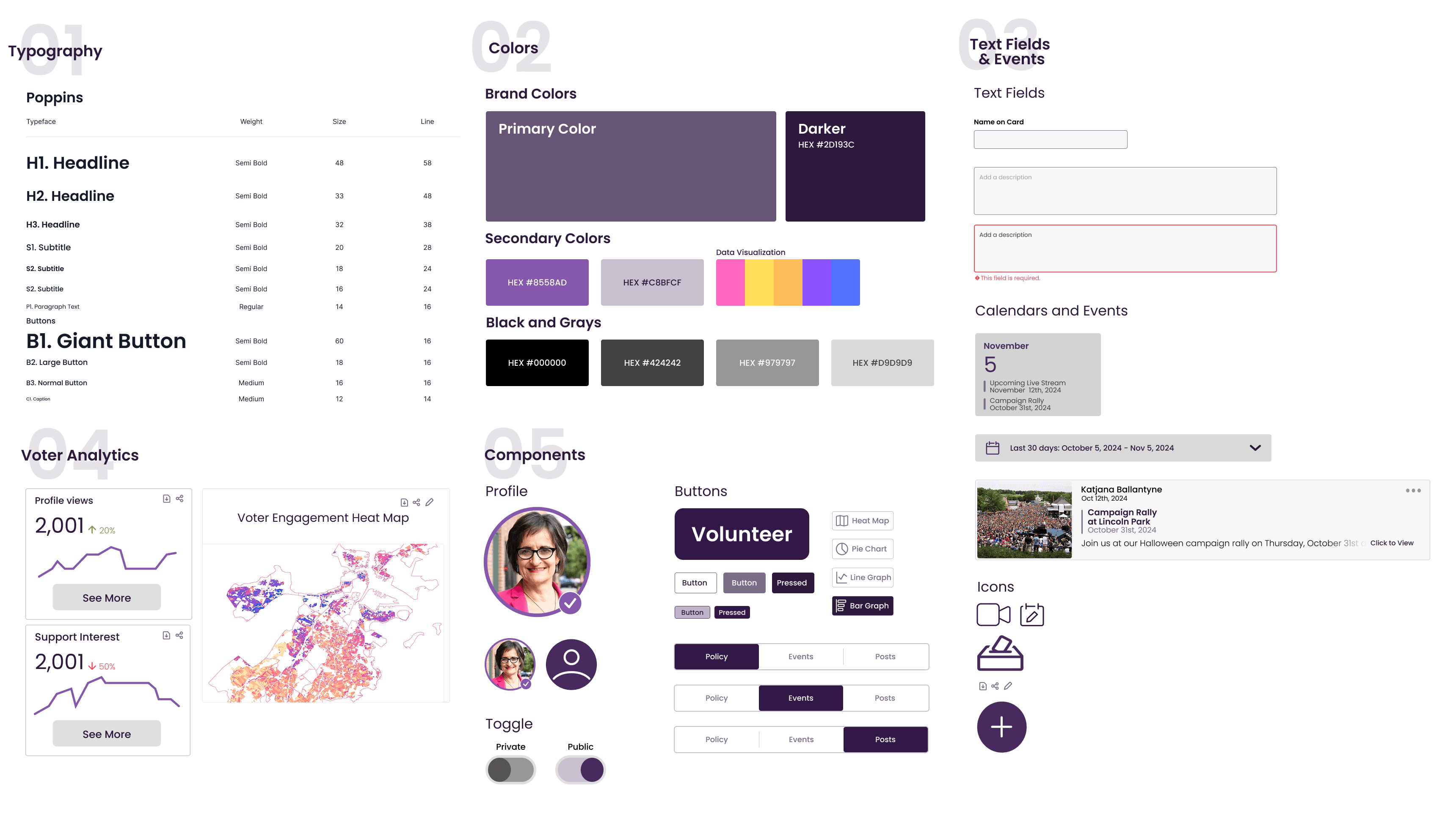 Based on the moodboard and our aim to make Equiballot's image more professional yet still approachable, I helped complete a design system for Equiballot.
